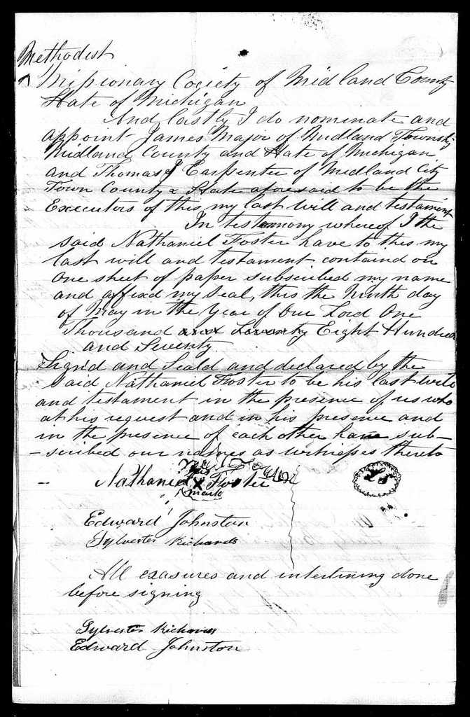 He lived to be 76 years and 10 months old, passing away on May 14, 1870, at the home of his daughter Mrs. Braly in Tittabawassee Township. According to his obituary in the Saginaw Daily Courier, he was remembered as a “sturdy old carpenter,” a “hospitable citizen,” and “the noblest work of God — an honest man.”