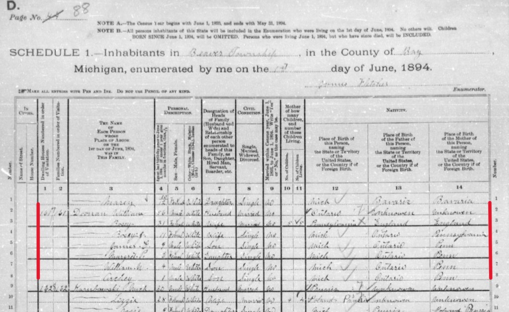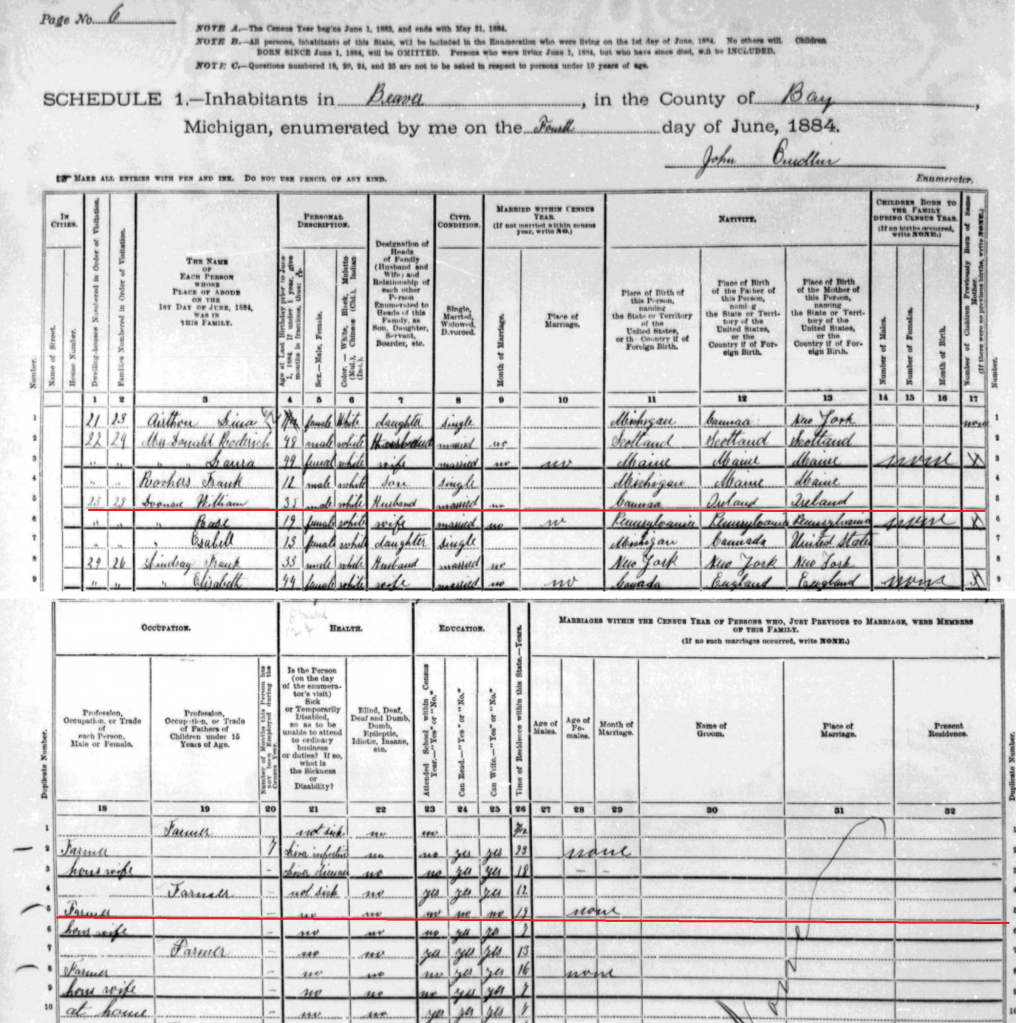 At the time of the earlier post, it was unclear whether this marriage ended through divorce or death. A subsequent review of the complete 1880 federal census for Beaver Township and Kawkawlin Township — examined page by page — failed to locate Thomas Osborn in either community.³ No additional census, land, probate, or newspaper records have been identified that place him in Rosie’s orbit before or after the marriage.