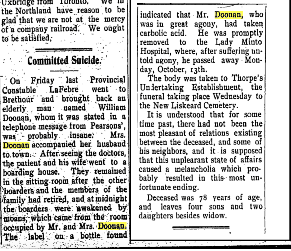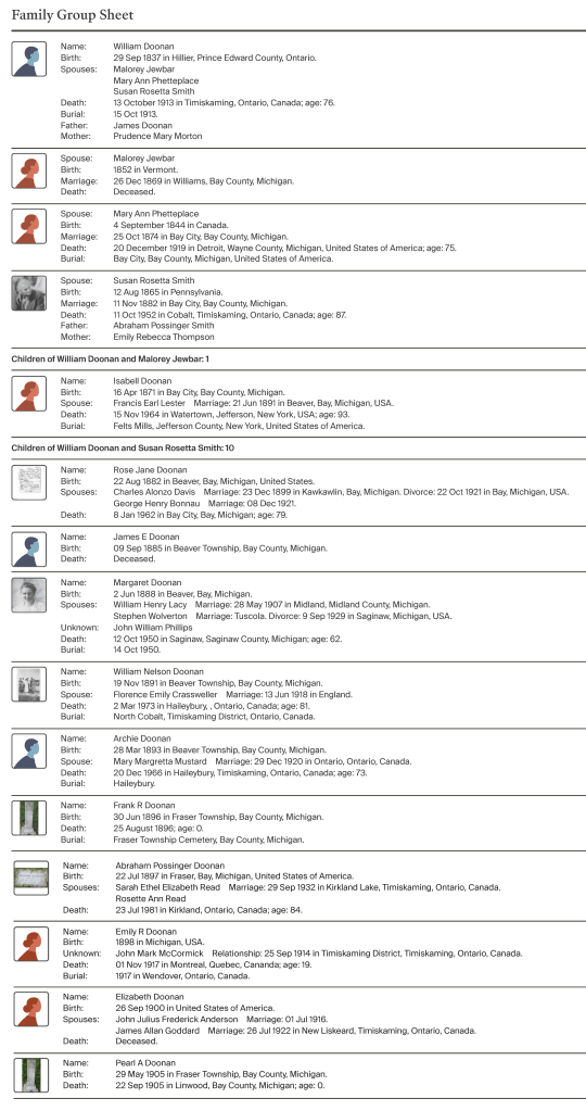 What has not changed since the earlier post is the broader shape of Rosie’s life. Her long marriage to William Doonan, the birth and loss of children, the move to northern Ontario in 1908, and her later years as “Grandma Ball” within the extended family remain exactly as they were first understood.