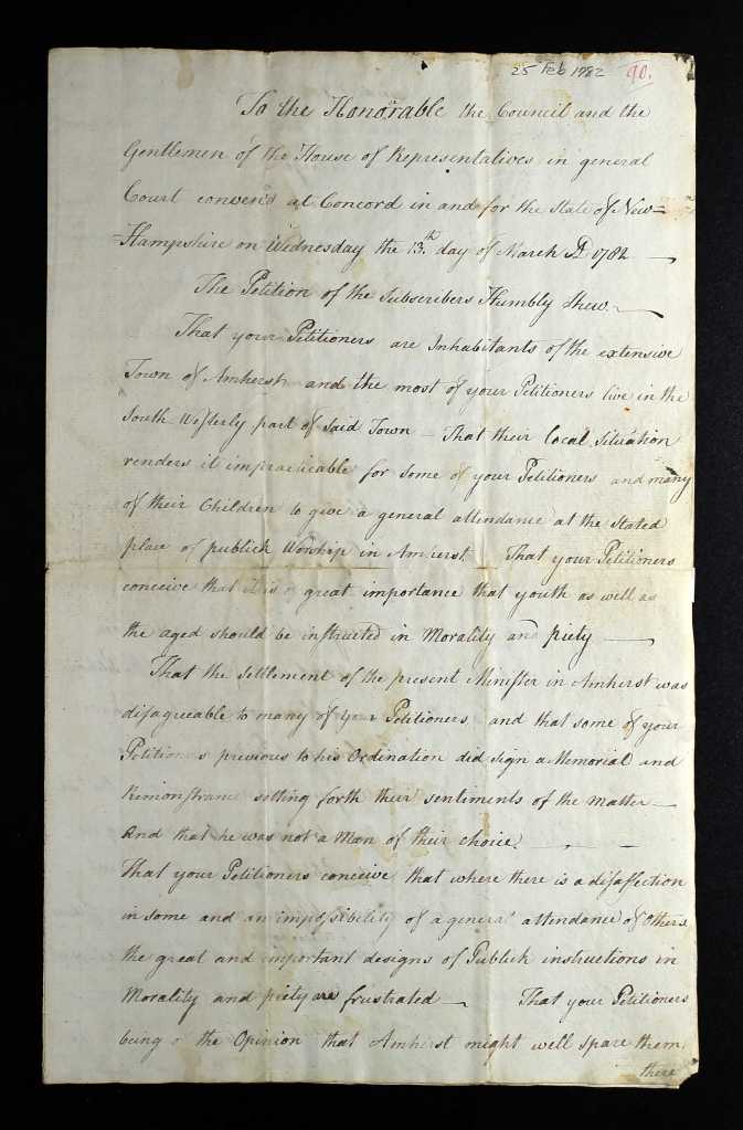 By the late 1770s, Bartholomew Towne was living in Amherst and Milford, Hillsborough County, New Hampshire. His presence there is confirmed not only through vital and census records but also through a surviving 1782 petition addressed to the New Hampshire legislature.⁹